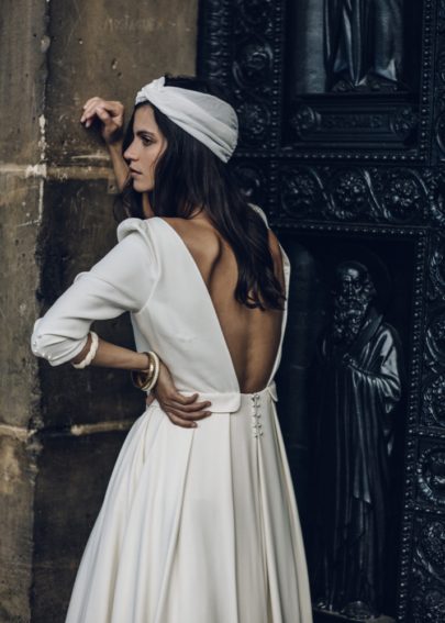 J’aime les vestes qui viennent couvrir les épaules mais surtout souligner les robes aux lignes fluides et impeccables et les top associés aux jupes, pour un look simple et décontracté. Les formes sont plus ajustées, mettant la silhouette des mariées en valeur, révélant des dos séducteurs. Les motifs écailles ou géométriques des dentelles de cette collection sont plein de caractère, féminins sans être fleur bleue, rétro sans en faire trop.