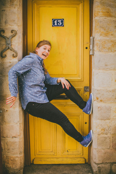 « Pour notre séance pré-mariage, nous avons décidé de retourner à Lille, là où notre histoire a démarré. Tout nous plaît dans cette ville, les couleurs des murs, les pavés des petites rues. Et puis avec Ricardo, la moindre façade devient un terrain de jeu ! Il faut dire qu’à chacune de ses idées nous étions partants à 1000%. «