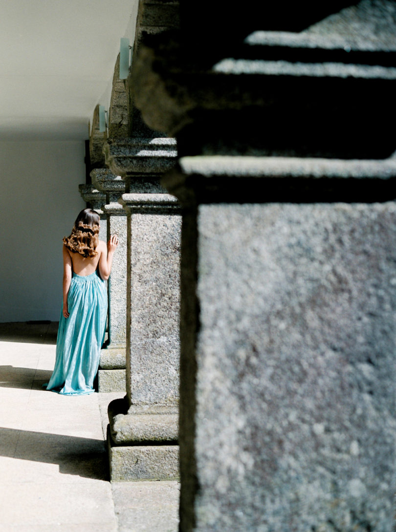 Sofia nous en dit plus sur ce qui l’a inspiré pour ce shooting… » L’inspiration pour cette séance éthérée est partie de ce lieu incroyable, le Couvent de Sanpayo, situé dans le Nord du Portugal, à deux pas de l’Espagne. Nous avions envie d’imaginer une mariée, Ana, profitant de ces quelques instants paisibles qui précèdent le mariage, portée par les traditions, et un profond attachement à sa famille. Côté couleurs, nous nous sommes laissés guider par les paysages environnants, les teintes de bleu et de vert, associées à la luminosité d’un blanc doux et pur. »