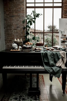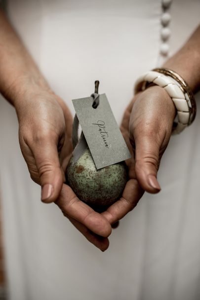 « Nous avons tout naturellement choisi les couleurs de la nature avec beaucoup de verdure et de feuillage mais voulions également donner un côté pur et élégant sans surcharger l’ambiance avec des fleurs blanches et notamment des roses de jardin que nous aurions très bien pu trouver au parc du Château Rosa Bonheur. Une légère touche d’or apporte du précieux et de l’éternelle. Nous sommes en fin d’été début d’automne, la lumière commence à baisser et les fruits annoncent la saison à venir, c’est pourquoi la poire de par sa couleur et sa forme s’est invitée tout naturellement à table. Dans ce shooting renouvellement de voeux, nous avons voulu exploiter toutes les ambiances de ce lieu en respectant au maximum son histoire tout en mettant en lumière ce couple de soixantenaires. C’est pourquoi on retrouve une séance couple au musée, au parc, puis un tea time pour finir par le diner. »