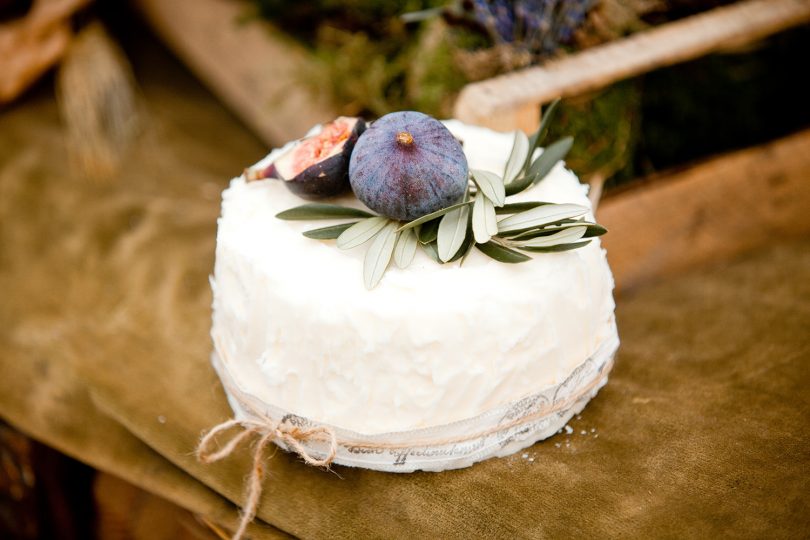 « Au centre de la table, le traditionnel wedding cake, façon ‘naked’ (de l’anglais ‘nu’ c’est à dire sans glaçage) décoré avec du romarin, de la lavande, des noix et des pignons de pin, entouré par un gourmand étalage de cannelés, de mini cakes à la noisette, de cupcakes aux parfums provençaux tels que la violette et la rose.