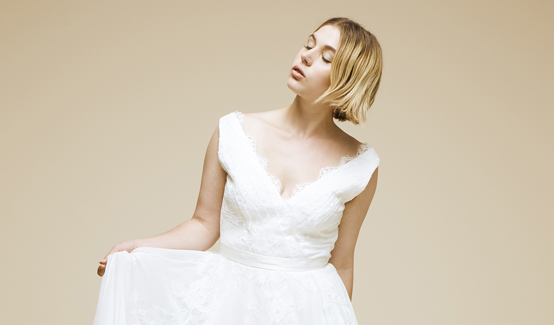 Authenticité et modernité, détails subtils empruntés au passé, Mathilde Marie nous fait découvrir les images de sa dernière collection de robes de mariée légères et pleines de poésie… Belles matières, histoire, art et littérature nourrissent la nouvelle collection de la créatrice qui a imaginé cette saison une ligne dans la continuité de ses précédentes collection avec 9 silhouettes à l’allure moderne, et toujours cette pointe rétro si chère à la créatrice. Crêpe de soie, plastron original, boutons de nacre se réinventent pour habiller les mariées en quête de modernité. Dentelles