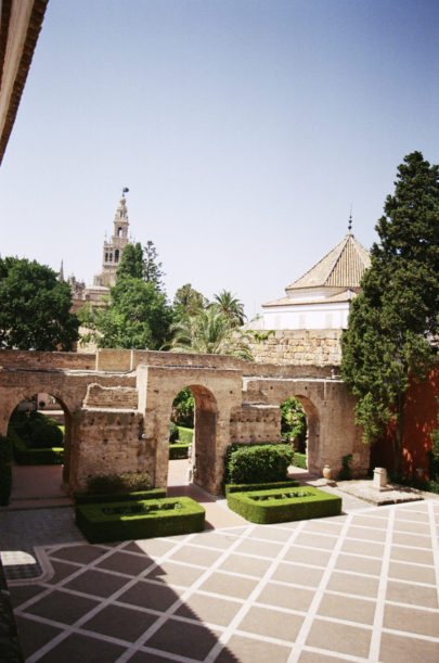 « Commençons donc par Séville! Une ville pleine de charme que nous avons visité à pied. Malgré une chaleur cuisante c’était le meilleur moyen de véritablement découvrir tous les coins cachés de la ville. Nous avons ainsi erré dans la vieille ville (nous nous sommes un peu perdu aussi d’ailleurs), rien de tel que de découvrir des ruelles désertes pour se redonner du courage. Nous avons également visiter l’extérieur et les jardins de L’Alcazar, somptueux et immense palais royal, une des plus belle découverte de ce voyage. Nous avons également apprécié le fait de ne pas loger dans le coeur historique de la ville (pas de restaurant attrape-touristes), nous étions dans un hotel dans le quartier de la Triana. Comme je vous le disais tout en faisable à pied, il nous suffisait de traverser le pont pour être au centre de la ville, mais étions dans un coin relativement calme et surtout au coeur de la vie des locaux de façon à découvrir plein de petit bar à tapas tous plus sympathique les uns que les autres… »